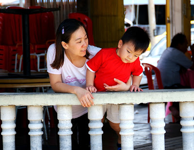 Climbing up the steep steps leading to Bukit Melawati.You know you're old when you've been lagged behind at some distance!